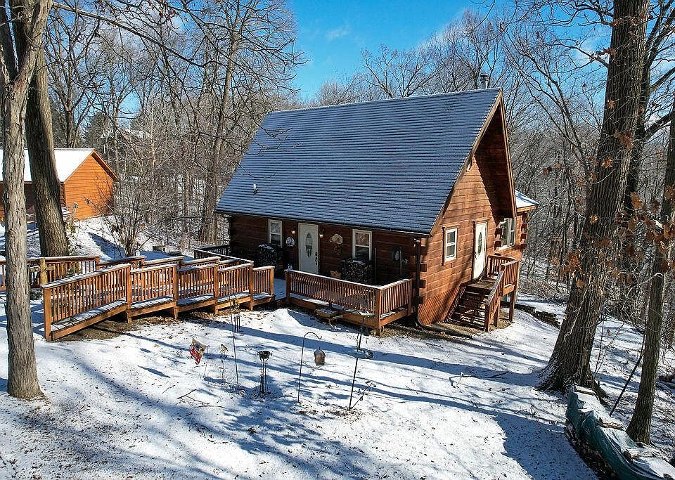 Immerse yourself in the beauty of Eagle Mountain, a highly sought-after location within Wisconsin's Driftless region of Crawford County just above Ferryville, Wisconsin, as you explore this log cabin retreat.Nestled on 2.5 acres of land, with an additional two lots included in the sale, totaling an expansive 7 acres, this charming home offers approximately 1700 square feet of living space. Originally built in 1995 and expanded in 2005, this home is ideal for weekend getaways or year-round living.The main level features a cozy bedroom and bathroom, while a loft area above provides additional space for relaxation or work. Below, a finished walk-out basement offers versatility as a guest suite or entertainment area. A detached two-car garage ensures ample storage.