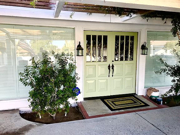 This Custom Estate is fully fenced with beautiful fruit tress for a gardeners dream home!! Double doors open into large entryway and formal living area complete with charming wood burning fireplace. Light is abundant with so may windows!! All tastefully covered with plantation shutters. Remodeled Kitchen has custom granite, stainless steel appliances and pull out shelves. Modern retro vibe is overflowing with the lighted china cabinet, original chandeliers and white brick. The split floor plan has a 2nd primary bedroom, full bath and laundry on south side of home. The north side has a massive game room with access to HUGE primary suite, including a slider to the private patio and spa. Exterior of house was re-plastered with stucco along with new plumbing 1.5 years ago. A Detached two car garage completes your wish list.