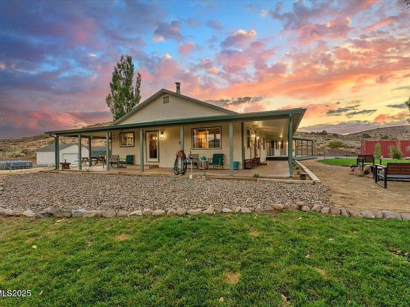 Every detail reflects pride of ownership, with thoughtful updates throughout the home in recent years. Outside, you'll find both an attached 2-car garage and a detached 2-car garage, perfect for vehicles, tools, or hobbies. RV parking with partial hookups makes welcoming guests or planning adventures simple. Imagine evenings on the covered porch, watching Nevada's famous sunsets paint the sky, or catching glimpses of wildlife crossing your land.
