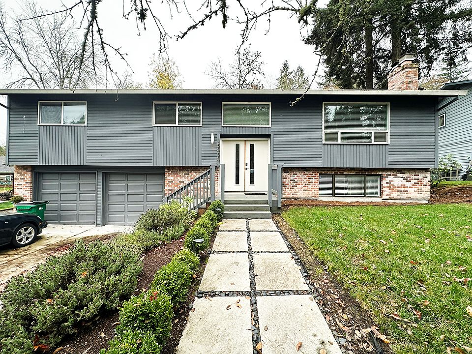 Large back deckDriveway parkingCustom tile workFramed mirrorsTwo car garageSplit level entryDouble vanities
