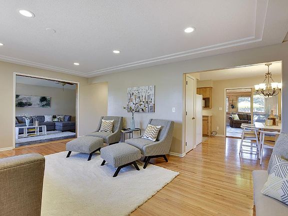 Spacious modern mid-century rambler nestled on .7 acre in quaint Staring Lake n-hood with easy access to Pioneer Trail. Features a ton of great living space on main level. Great natural light and hw floors greet you upon entry. A fantastic build-out of the original one-car garage provides a wonderful space that can house a family room, office and mud room, 4-season porch offers dramatic southern exposure and overlooks the huge back yard. 30'x26' heated garage and 1,130 unfinished LL SF to boot!