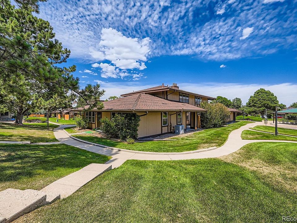 Spacious 3 bedroom, 2 bathroom townhome with full finished basement. New paint and carpet. Hardwood floors on main floor with wood burning fireplace. Kitchen features granite tile countertops, new stainless microwave & oven, refrigerator & dishwasher, maple cabinets with additional dining room cabinets. Front and rear fenced, concrete patios ideal for entertaining. Reserved parking space and additional carport available. New humidifier installed. Quality windows throughout. Washer & Dryer included. Basketball & Pool nearby. Coveted Cherry Creek School District. Please ask listing agent about available rate buy down.