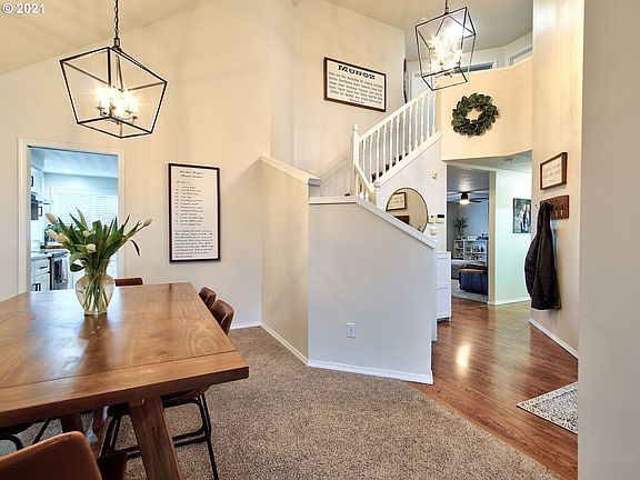 This updated modern meets farmhouse design home offers a flowing, spcacious floor plan with vaulted ceilings, views from master and living room of Mt. Hood, newer roof & gutters, updated kitchen, SS appliances, finished carpentry/hardware, doors, updated bathrooms & laundry, lighting, exterior paint, 2 separate living spaces, abundant storage and outdoor deck. N Clack School Dist.Affordable Clackamas home, with the finer finishes and outdoor space for your activities sets it apart from others.