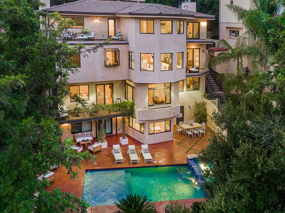 Set in the foothills of Sherman Oaks stands this custom contemporary home, a triumph of sophistication and comfort. Boasting 5,915 Sf of living space, this 6 bed 7 bath features a formal living room, large dining room with beautiful views of the canyons and surrounding mountains. The updated Kitchen includes a breakfast area, island and direct access to finished garage. An elevator with access to all levels, a master retreat with two walk-in closets and a private spa like bath. The lower level features a state of the art movie theater, large family room with wet bar and office. In addition, there is a gym/ guest quarters or work from home office. The private back yard oasis features a large a custom pool with a Baja shelf and oversized hot tub. A large flat deck with a fire pit and tons of space to bask in the sun and entertain with ease. Private and spacious, this home offers a very flexible floor plan for any size family or work from home opportunity.