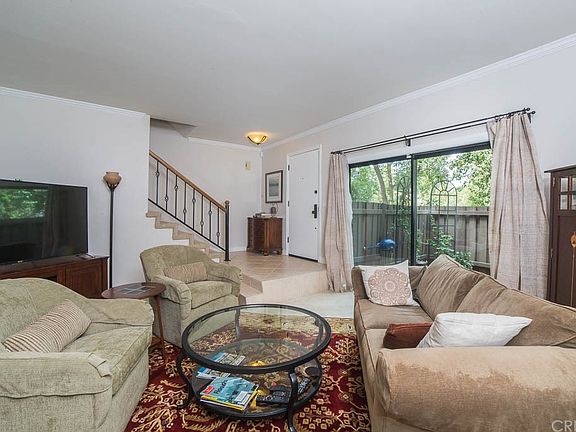 Remodeled rear townhouse in the highly desirable Kimberly Woods complex shows true pride of ownership! Unit features 3 bedrooms and 2.5 bathrooms with spacious floor plan. Bright and airy living room with crown moldings, tiled gas fireplace and views of large private tiled patio with mature trees; Spacious formal dining room has been freshly; Remolded kitchen with ample wood cabinetry, Quartz countertops with tiled back-splash, large Quartz breakfast bar, tile flooring, recessed lighting with plantation shutters is adjacent to open family room. Updated downstairs powder room. Upstairs spacious master suite has "His and Her" closets, separate sitting area, plantation shutters, crown moldings, ceiling fan and private full updated bath; Two additional spacious bedrooms each with ceiling fans and plantation shutters. Additional upstairs full bath. Smooth ceilings throughout, dual paned windows, ample storage space, central heat and air. Attached over-sized finished garage that fits 3 cars and has laundry area. You're going to spend countless hours enjoying the very large lush greenbelt right out your front door, in the rear of the complex, that feels like your own private backyard! Gated community features a heated pool, spa, sauna, BBQ and picnic areas for private parties, with two separate grassy yards. Close to shopping, public transportation and freeways. HOA includes EQ insurance, water, trash, landscaping, common area maintenance, and complex security company.