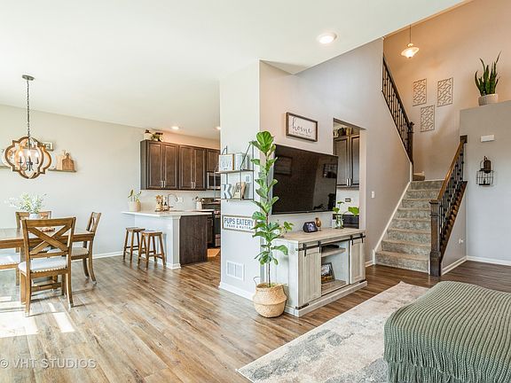 Experience the epitome of charm & comfort in this super cute townhome! Boasting 3 bedrooms & 2.5 baths, this delightful home is ready to become your haven. Step into the spacious living area & be captivated by the seamless flow of vinyl plank flooring. The living room, dining area, & kitchen create a harmonious space for entertaining. Abundant natural light floods in through windows, creating a warm & inviting ambiance. The kitchen is well equipped with modern appliances, ample counter space, tile backsplash, plenty of storage cabinets & closet pantry. A half bath on the main floor with a new vanity, light fixture & mirror adds convenience for guests. Upstairs, the owner's suite offers a generous size, walk in closet & an ensuite bath for added convenience. The additional bedrooms are versatile & can accommodate guests, children, or serve as a productive home office all with the convience of the 2nd floor laundry. Outside, a charming patio awaits, providing the perfect spot for enjoying your morning coffee or hosting delightful summer gatherings. The no-maintenance landscaped yard allows you to spend more time enjoying your new home. Nestled in a desirable neighborhood, this townhome is backed up to the soon to be built park. Don't miss out on the opportunity to make this super cute townhome your own. Schedule a viewing today & embrace the perfect blend of comfort & style that awaits you!
