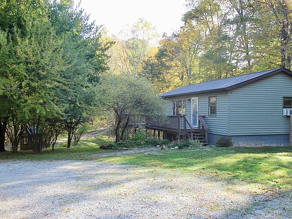 Looking for nature and quiet, this 2 Bedroom Ranch, built by original owner, sits on 6.08 acres and has a stream and stocked fish pond. The 20x30 pole barn allows for one vehicle but there is plenty of parking to be utilized. Fenced garden area as well as chicken coop! Cash or Conventional financing only.