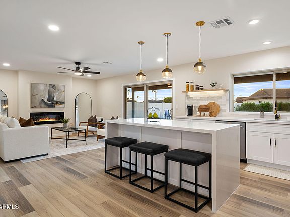 Stunning curb appeal, featuring a redesigned landscaping. Step inside to find a quality craftsmanship, reliability, luxurious finishes that perfectly balances openness with functionality. An Inviting Dining & Living area to entertain large groups. Kitchen that stuns with a spacious quartz waterfall island with bar sitting, overlooking the expansive serene backyard, Custom white Shaker cabinetry, high-end stainless-steel appliances, spacious walk in Pantry providing ample storage. Lavish primary suite offers a redesigned spa-like retreat with luxurious Shower & tub combo with elegant fixtures, custom floating vanity and Walk-in closet. Backyard offers you a private resort experience with a perfect relaxing setting, views of breathtaking sunset with a sparkling diving pool surrounded by lush landscaping.