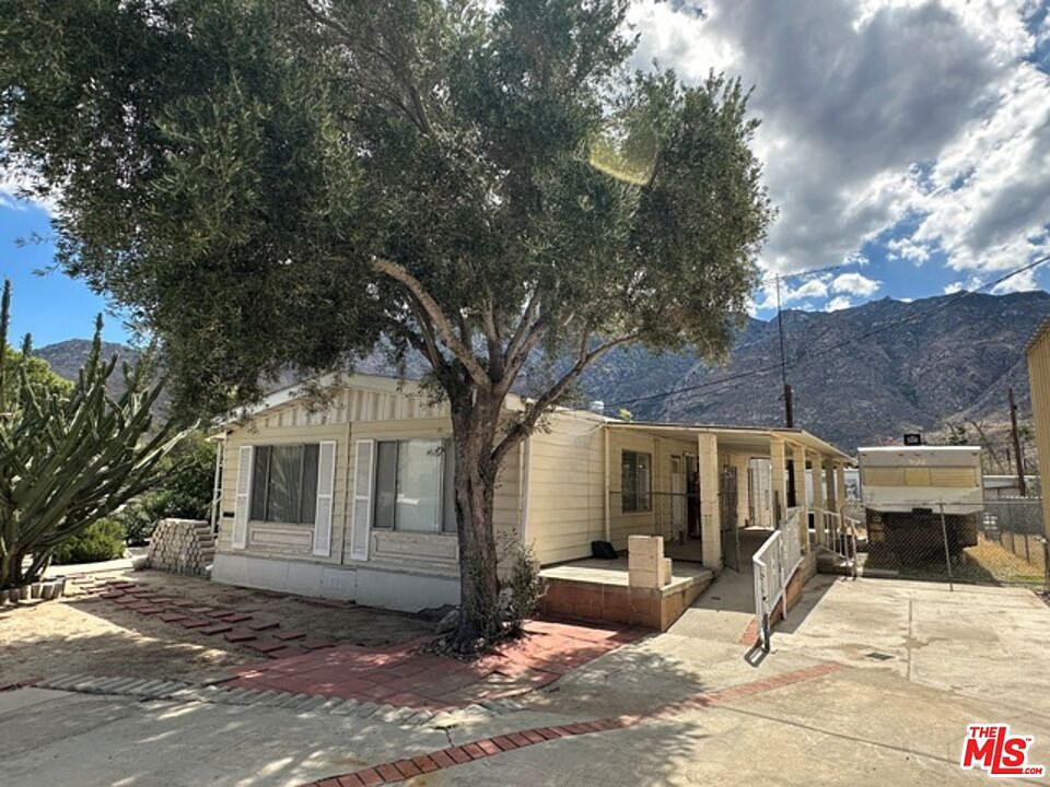 This Move in Ready Mobile Home Has Breathtaking Panoramic Views From Every Window. The home is 1,440 sq ft and sits on a large 14,375 sq ft lot. Upon entering the home you will be captivated by the beautiful custom chef kitchen, featuring a spacious breakfast counter, stainless steel appliances and a large farmhouse sink (the kitchen window frames magnificent mountain views). The combined open concept kitchen and family room is a great space for family gatherings. Right off the kitchen is a indoor laundry room which leads out to the over-sized patio to entertain/bbq. The private formal living and dining room has walls of windows. This home has 2 good size bedrooms and 2 bathrooms (the primary bedroom, has 2-closets and a spa-like bathroom with big soaking tub, shower, dual sink vanity and a nice size linen closet). BONUS BONUS BONUS This property includes an over-sized 1,800 sq ft detached garage/workshop (DREAM MAN CAVE) equipped with 2-separate roll up doors allowing convenient drive-through access (one of the roll up doors is a BIG RV/Boat/Toys roll up door), huge upstairs loft and downstairs private office. The backyard has a self contained 5th wheel right off the patio, included in sale. YOU CAN MOVE RIGHT IN BECAUSE ALSO included are the bar stools, living/dining/bedroom set ((mattress not included)). Do not miss out on this thoughtfully taken care of home with mature yielding fruit trees and raised planter veggie boxes. Bonus: Newer AC and Roof.. Call today to see this excellent priced family home......