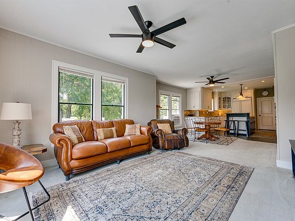 Unbelievable interior in this 2 bed, 2 bath home on 12.5 acres. The seller is willing to sell fully furnished, making this a turnkey opportunity! Major updates have been completed, including septic (2020), roof (2020), and electric, plumbing, and water heater within the last two years. Inside, the home has been completely updated with stylish finishes throughout. The big kitchen boasts custom cabinets, granite counters, a built-in fridge, and crown molding. The bathrooms feature modern touches, including a vessel sink and custom tile shower. Windows across the home invite natural light and showcase the beautiful property.