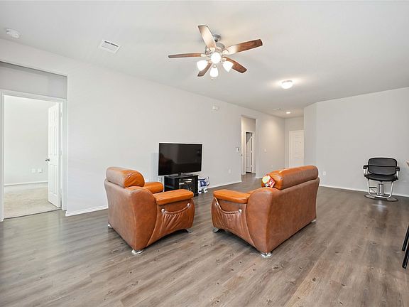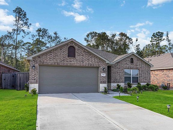 Rarely used and beautifully maintained home with no back neighbor and peaceful wooded views! This like-new 3-bedroom, 2-bath in Harrington Trails features an open floor plan, bright kitchen with granite counters and breakfast bar, and a spacious primary suite with dual sinks and walk-in closet. Enjoy a covered patio and private fenced yard perfect for relaxing. Convenient access to Hwy 59, shopping, and schools — move-in ready and shows like new!