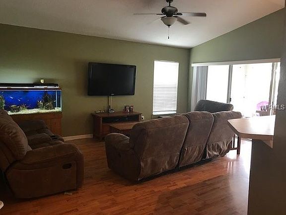 Looking for a great family home. This 3 bedroom 2 bath home built by Beazer is ideal. Enter through the New front door into the big open tiled hallway. To the left you will find the dining room which can accommodate a good size table and chairs. Chair rail compliments the dining room with crown molding also in the family room. The family room, dining room, bedrooms all have laminate flooring. Kitchen features a double sink, pantry and plenty of work space with the breakfast bar. There is a eat in area off of the kitchen. Master bedroom is a wonderful size and has a walk in closet as well as a regular closet. Master bath is huge with a garden tub, walk in shower both with new decorative tile and double sinks. Inside laundry room. New paving stones compliment the entrance way and match the lanai out back and are only 2 months old. The AC is 6 years old and has just been serviced. A wooden deck surrounds some of the back yard making it a great entertaining area. Vinyl fence for extra privacy. Make your appointment to view this home today before it is gone.