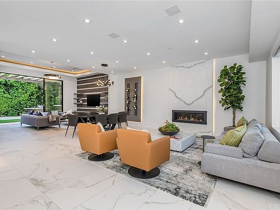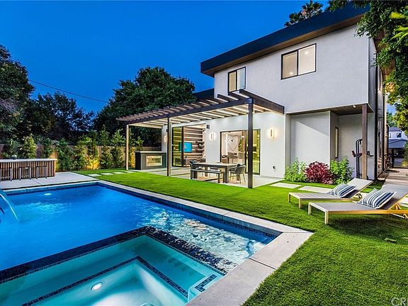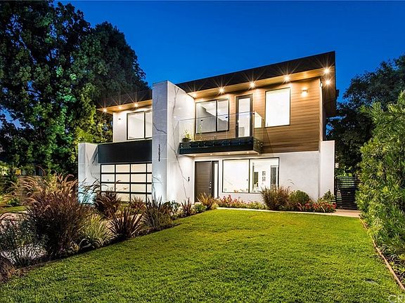 Welcome to your stunning work of art, new construction home located in Sherman Oaks. Gorgeous curb appeal with lush landscaping surrounds the exterior of the home featuring enclaving bold porcelain slabs which creates a sleek, modern statement like no other. Porcelain floors, large windows, recessed lighting, soaring ceilings, and luxury finishes of the home come alive once the custom LED lights carved inside the moldings of each room are turned on. Breathtakingly beautiful yet exceptionally functional, this extremely open floor plan naturally sweeps throughout the showstopping home. Formal living room with a cozy fireplace greets you in and flows into the striking dining room featuring a custom wine rack. The glamorous high gloss chefâs kitchen features built in top of the line appliances, custom cabinetry, and a center island with room for seating. Large Fleetwood glass sliding doors provide seamless access to the backyard sanctuary from the chefâs kitchen and the boasting family room. The incredible backyard surrounded with trees features a stunning waterfall pool, spa, built in fireplace, and outdoor kitchenette with BBQ and wine fridge. Glass railing and designer lighting lead you upstairs to the master suite and additional 2 ensuite bedrooms. The majestic master features a walk in closet, massive windows, spacious balcony, and master bath with large walk in shower, soaking tub, and double vanities. Revel in this fully custom & awe inspiring modern masterpiece!