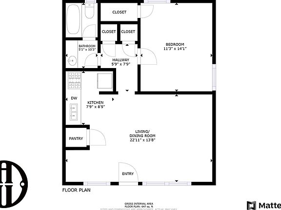 - Total interior livable area: 647 sqft