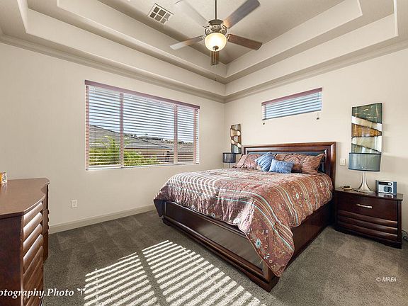 Beautiful "like new" furnished home in gated Royal Vista. This 1552 sf quality construction home has 2x6 exterior walls and offers 3 bedrooms, 2 baths and 2 car garage with an 8'H garage door and epoxy flooring. Most of the home has upgraded 20x20 porcelain tile with carpeting in the bedrooms. Solid knotty alder wood, soft close cabinets throughout the home in an Espresso finish with upgraded granite counter tops and top of the line stainless steel KitchenAid appliances. Solid wood 8'H interior doors, 5" wood baseboards and crown molding in the bedrooms. Also includes front loading washer and dryer and water softener. This home is ready now for new owners!!