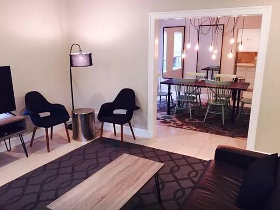 Can be rented partially furnished. Recently renovated 4 bedroom, 2 bath bungalow on a quiet, residential street in East Austin. Walking distance to downtown. House basics :: Large, open living area Large, open dining area Open kitchen with bar area and breakfast nook Two full bathrooms Four large bedrooms Laundry room with washer/dryer Extra hall closets for added storage Outside space :: Large front porch Side porch off one of the bedrooms Large backyard
