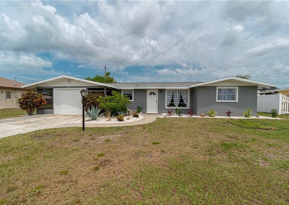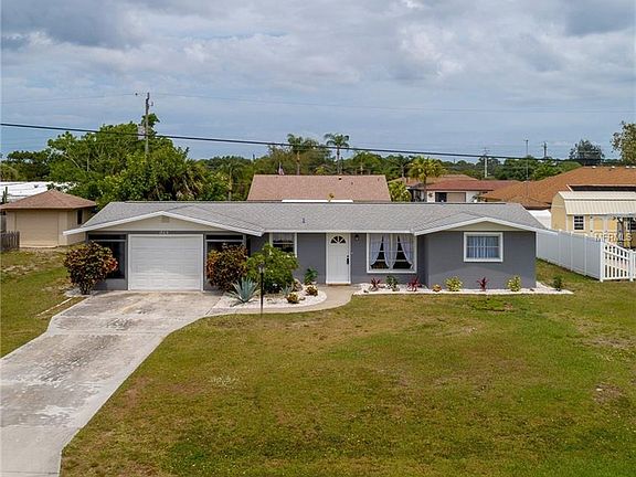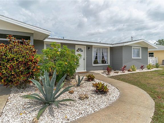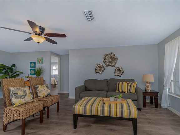 Prepare to expect the unexpected with this charming home! When you arrive, the tasteful renovations are immediately apparent. The rich slate color, attractive trim, and beautiful landscaping are just the beginning. As you walk through the front door, the gorgeous vinyl plank flooring and ceramic tile leads you throughout this delightful home. The upgraded lighting fixtures and ceiling fans and designer wall colors add a distinctive flair. Large windows, sliding glass doors, and the glass inset in the front door create an energizing flow of natural light and the well-designed floorplan creates the feel of a much larger home. The beautiful kitchen offers gleaming granite look countertops, raised panel white cabinets, a tile backsplash, and opens to the dinette area, perfect for entertaining! Both bathrooms are HGTV quality with striking tiled showers, 2 sinks in the main bath, and unique accessories. The laundry room is large enough to accommodate an office space, and there is room for your toys in the garage. Centrally located, you can bike to the beach, only 2 miles away, head to the Farmer's Market on Dearborn Street, just 4 miles away, spend the day at a nearby golf course, beach, or waterfront restaurant. Or splash your boat at the community boat ramp (optional $50/year), only a block and a half away, and be in the Gulf of Mexico in minutes. In the evening, relax in your screened lanai, grill on your patio, and enjoy your large, private backyard. It's time to Live Life Now. Call today!