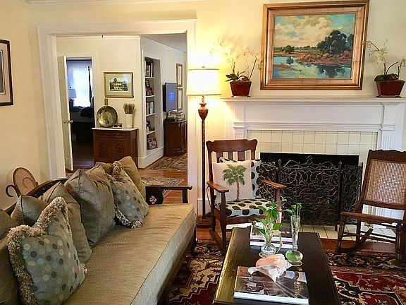 Located on a corner lot with a rentable guest house, this classic home offers all hardwood floors, smooth ceilings and molding throughout, and a great front porch! Large living room with fireplace and elegant archway leading to the dining room. Kitchen with heartpine floors, eat-in area and stainless steel appliances. Den with built-ins and picture window overlooking the fenced backyard and door to raised patio. Large master suite with added walk-in carpeted closet and private bath with newly remodeled shower. Two additional good sized bedrooms are served by newly remodeled hall bath. The home is located directly behind the famed, upscale Streamline Moderne style home, fondly known as the "Robot House" in Forest Hills. Guest house has private entrance, walkway, and driveway. This structure, which matches the house from the exterior, has recently refinished hardwood floors in the den, bedroom, and walk-in closet. The bathroom has newly-tiled floor and the kitchen is linoleum. Currently, it rents for $600/month. The square footage listed does not include the guest house. Appliances included: refrigerators (main house and guest house), stove and ovens (main house and guest house), built-in microwave, and stacked washer and dryer. Owner willing to rent main house if buyer is not ready to move in immediately. Zoned for A+ schools: Satchel Ford Elementary, Crayton Middle, and A.C. Flora High. Large lot with ample parking for guests. Storage room/"garage" located behind guest house. Energy efficient home with storm windows throughout and low power bills. Large attic that could be converted into a finished second floor.