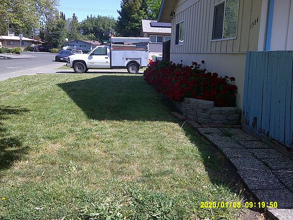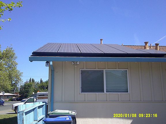 This inviting single-story home offers 3 bedrooms and 2 bathrooms, featuring a cozy family room and a dedicated dining area. The kitchen includes an electric cooktop, oven, and dishwasher, while a wood-burning stove adds warmth and charm to the living space. Enjoy year-round comfort with central heating and air, and appreciate the energy savings from the installed solar system. Wood floors enhance the bedrooms, adding a touch of elegance. Outside, relax on the covered back patio overlooking a grassy yard with beautiful rose bushes. A 2-car garage provides ample storage and parking. Perfect for comfortable living and entertaining!