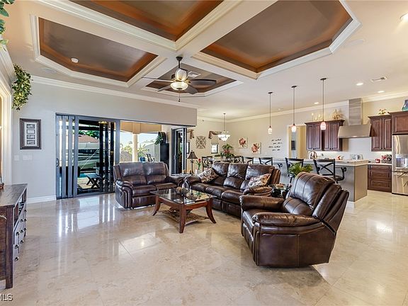 Luxury Gulf Access Home with Southern Exposure and Exceptional Upgrades Welcome to 1504 Mohawk Parkway, a stunning Gulf-access custom-built home located in one of Cape Coral’s most desirable areas. This beautifully designed 4-bedroom (3-bedroom plus den/office) residence sits on an oversized 90x125 lot with southern exposure on the Santanita Canal, offering boating access to the Gulf with only one bridge. Every detail of this home has been thoughtfully designed for comfort, elegance, and functionality. The moment you arrive; you’ll notice the attention to detail and quality craftsmanship throughout. Step inside to discover soaring ceilings, 8-foot solid doors, and exquisite travertine floors complemented by custom crown molding and tray ceilings with lighting in both the living room and primary suite. The open-concept floor plan is perfect for entertaining, featuring a custom kitchen with soft-close cabinetry, textured granite countertops, a large center island, separate wine fridge with bar sink, and a garbage disposal. Laundry room with cabinets and sink. The primary suite offers a private retreat with sliders leading to the lanai, two walk-in closets, a jacuzzi tub, walk-around shower with multiple shower heads, a heated towel rack, and a bidet toilet. Each additional bathroom has GFI outlets for future bidet installation.