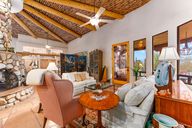 From the moment you step inside this extraordinary residence, you're welcomed by soaring 16-foot viga-latilla ceilings, a curved wall of windows, and artisan flagstone floors that echo the heritage of the Sonoran Southwest. At the heart of the home lies a breathtaking kiva-style, floor-to-ceiling rock fireplace, grounding the expansive great room ...
