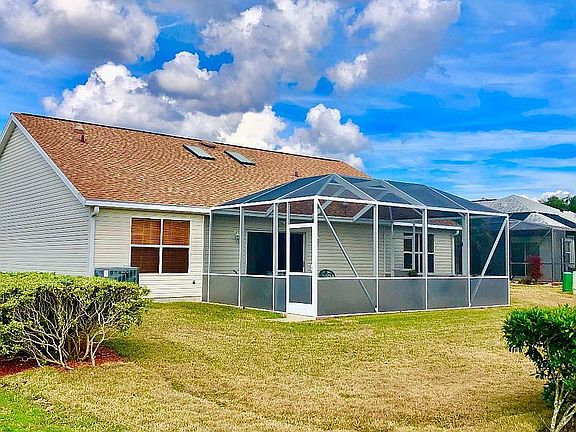 HACIENDA SOUTH ...Designer Home (Santa Domingo Model) with additional Den and Birdcage Lanai overlooking Spacious Yard. This home is beautifully maintained. Pet Free / Smoke Free / Very Clean. "NEW" - roof, hurricane garage door, Interactive fire/smoke alarm system, Trane Heating/AC system, Hot water tank, Solar tubes, Hurricane skylights, Deco-Paint Sealed drive, sidewalks, garage surfaces. many more updated features all in excellent condition. Move-in-Condition. Location is minutes in a golf cart from SS and Sumter Squares and shopping. AWAYS AVAILABLE TO SHOW