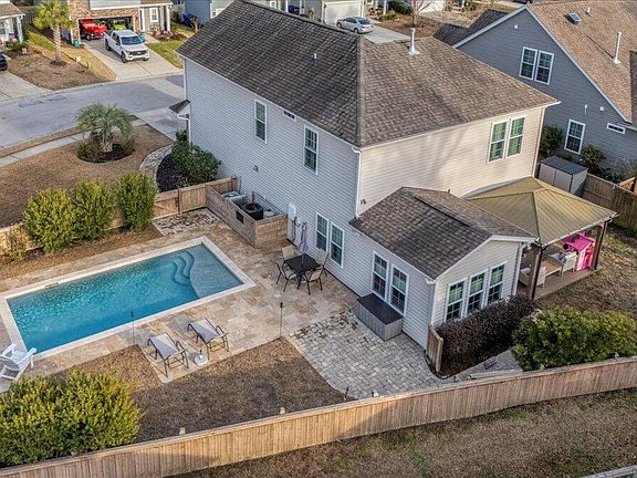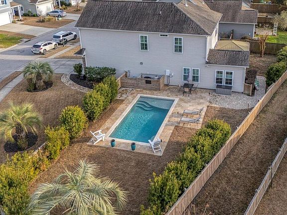 Prime Corner Lot Oasis: Spacious 4 Bedroom Home with Heated and Chilled Gunite Pool.This beautifully maintained 4-bedroom 2.5 bath home, located on a desirable corner lot, is a perfect blend of modern living and outdoor leisure. The spacious backyard features a heated and chilled Gunite pool with Wi-Fi controller for year-round enjoyment, plus a fully fenced yard offering privacy and peace of mind. a beautiful paver walkway leads you to a charming Trex covered patio with a brand-new pergola featuring a ceiling fan and lights that are remote controlled, ideal for relaxing or entertaining. In addition, the home comes with a Rain Bird irrigation system.Inside, the home boasts a chef-inspired kitchen equipped with a gas stove, sleek Silestone counter-tops, and ample storage space. The open concept dining and living areas flow seamlessly into a light-filled sunroom, creating a bright and inviting atmosphere throughout the home. The flexible 4th bedroom can be used as a private bedroom or as a second family room/game room or media room, complete with a built-in home theater system for a true cinema experience. For added peace of mind, the property includes a Ring doorbell and solar-powered Ring security cameras. With no carpet throughout, this home is as easy to maintain as it is beautiful. Other features include upgraded light fixtures throughout the home and a recently installed outlet to the breaker panel for a generator feed into the home. Located in a community with walking trails and a pool, Tupelo Plantation offers a perfect balance of relaxation and recreation. This home is ready for you to move in and start making memories!