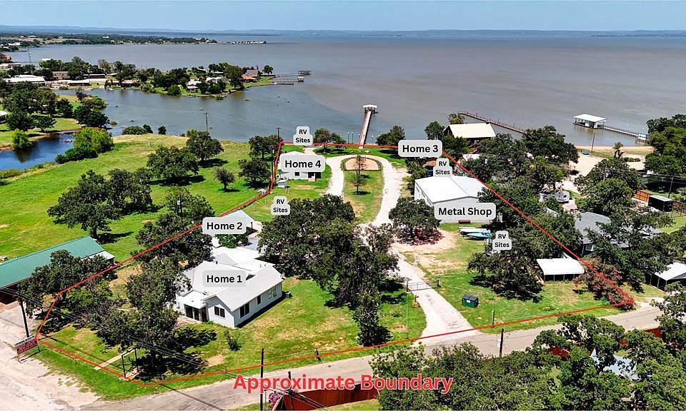 Lake Buchanan - Income producing property - priced below recent appraisal! Unrestricted 2.38-acres with 262 feet of prime Lake Buchanan frontage (5 mile view across open water). This income-producing property is perfect as a family getaway, vacation rental, or investment opportunity. Features: Primary Home: 1950s vintage with original oak hardwood floors and large addition with expansive kitchen/living area. House 2: 3/2 MH with open living/dining/kitchen, wrap-around porch, and lake views House 3: 3/2 MH with 2 living rooms, wrap-around porch, and lake views House 4: 1/1 site-built with covered porch and parking All homes have central heat/air and are in excellent condition. Most currently leased. Additional investment amenities: 14 RV sites with full hookups and individual electric meters Massive metal shop with 3 roll-up doors and office. Fenced with electric security gate Cement bulkhead, pier, and boat ramp for easy lake access Private well plus 2 community water taps, approved septics, paved driveway, planted oak & cypress trees and sand volleyball court. Conveniently located on the SW end of the lake near Highways 1431 & 29, just 90 minutes NW of Austin & San Antonio. High potential for rental income with room to grow. Recent title work and LCRA septic approval - this place is ready for a new owner! Value added property - possibly one of the best live water deals in Central Texas, come see!