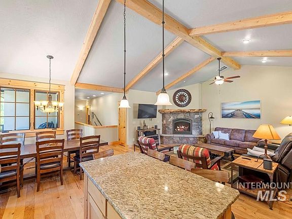 Experience turnkey luxury living in this stunning four bedroom three bath townhome offering 2,100 square feet of beautifully crafted space. Step inside to discover hardwood flooring throughout, soaring high ceilings, and spacious rooms that create an inviting and comfortable atmosphere. Enjoy cozy evenings by the fireplace or retreat to your primary suite with a generous walk in closet and dual vanities. The townhome is offered fully furnished and set on a well maintained quiet road. Privacy and tranquility await you while remaining close to all the best of McCall: lake activities, scenic bike paths, and world-class skiing. Don't miss this unique opportunity to town a move in ready, luxury sanctuary in a prime location.