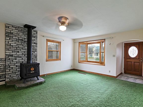 This charming Missoula home, built in 1947, exudes timeless character. The residence features two bedrooms and a full bathroom. The kitchen features laminate flooring, a stove, fridge, and a newer stainless steel dishwasher. The wood stove in the living room will be removed prior to closing. Downstairs, an unfinished basement presents ample storage or renovation opportunities, complete with washer and dryer hookups, a furnace, and a water heater. Outside, there is a covered back porch and shed. The yard is adorned with flowers, fruit trees, and a tranquil small (man-made) pond. In 2014, the home was capped with durable Metro shingle steel roofing, promising long-lasting protection with a 50-year warranty that can be transferred to the new owner.