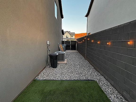 - Pet-friendly fenced backyard with turf, rocks and two raised beds for gardening. Extra cement pads laid for outdoor furniture.