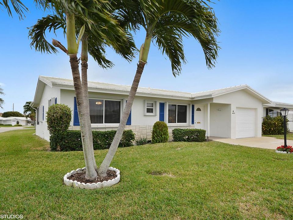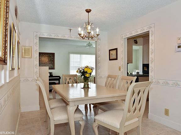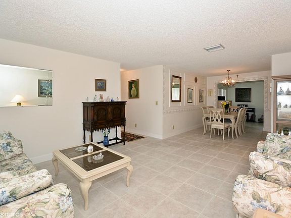 Spacious BACKVIEWS from the Beautifullyupdated Regis Model with both FloridaRoom Plus Screened Porch..Porch faces SEfor those gulfstream breezes. Paid uprecreation leases in full. Thousands in upgrades including TILE THRU-Out, Windows Replaced with Accordion Shutters, Roof both Tile/Flat Replaced.Kitchen cabinetry all replaced 42'' and newer appliances.Pull-outs for easy storing. Moen Faucets thru-out. Both Bathrooms updated with high vanities, new commodes, faucets, electric fixtures. Electrical panel box replaced both inside & outside. A/C replaced, garage door replaced.Recessed lighting in kitchen.This home is MOVE IN and Better than New...A Must See....