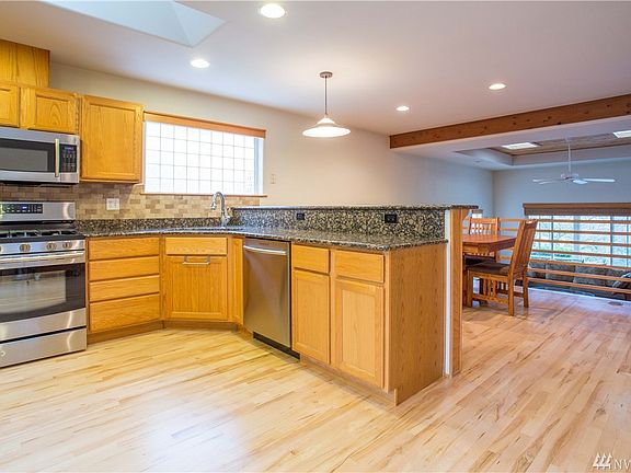 Beautiful home located in city limits has 3 bedrooms, 2 bathrooms, 1444 Sq Ft and was built in 1999. Enjoy the park like setting in the backyard on your new deck or sitting on your newly painted covered front porch. This house offers granite counter tops (kitchen remodel in 2014), stainless steel appliances, newly refinished hardwood floors, cedar ceilings in living room, high end wood railings, extra storage under the house, newer hot water heater, gas fireplace, and a 2 car garage.
