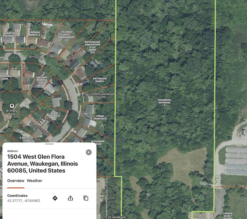 Three parcels of property being bundled together. 1504 Glen Flora is zoned residential with two existing structures. A older farm house and a garage. That 1/2 acre parcel is zoned residential. Home and garage being sold as is. They are a complete gut rehab or teardown. That pin number is 08172000180000, this is 1/2 an acre and is not in a flood plane. Pin Number 08172000160000 is zoned commercial vacant and is 7.26 Acres. Pin number 08172000120000 is zoned commercial vacant and is 4 acres. The 11.26 Acres of Commercial vacant is sided by the creek. Value is in the land. Wooded and beautiful. If you are looking for somewhere to build a business or gut rehab the existing structure you have a wonderful piece of property to do so. Access to home and garage is not permitted right now until we can clear it out. All you can do is access and walk the property at this time. No entry to any of the structures is allowed. Buyers and Buyer Agents to do their own due diligence with regards to zoning and square footage of property and buildings.
