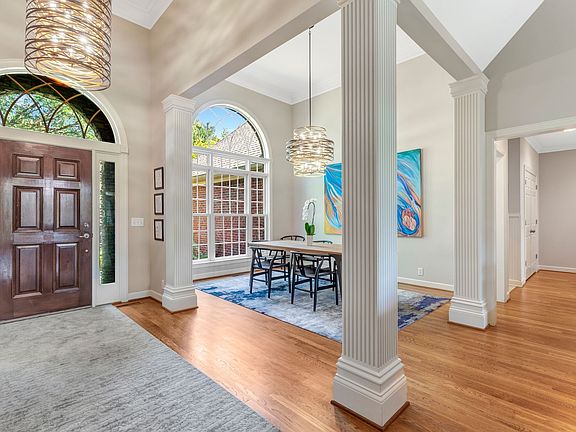 Timeless Charm Meets Modern Luxury. Welcome to this stunning executive home nestled in the highly sought-after Northwoods West neighborhood. From the moment you arrive, you'll be captivated by its classic hand-cast brick and cultured stone entry, setting the tone for timeless elegance throughout. This beautifully designed home features 3 spacious bedrooms on the main level, along with an open-concept living space highlighted by gleaming hardwood floors, a cozy fireplace, and a dedicated home office with custom built-in bookcases—and a 2nd fireplace perfect for work or study. The kitchen is great for any level of cook complete with a gas cooktop, under cabinet lighting, built in oven, ample counter space in a gorgeous black granite and a large pantry—ideal for those who love to cook and entertain. Retreat to the luxurious primary suite, featuring a huge walk-in California closet, air jet soaking tub, separate tile shower, and double vanity—a true spa-like experience.