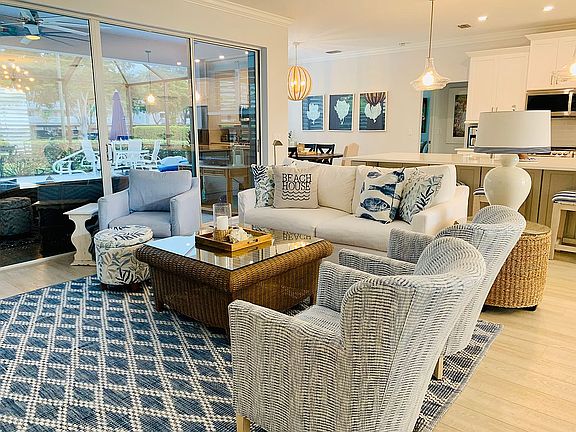 Completely remodeled in 2021 by a professional Interior Designer. New luxury vinyl plank flooring through out home. New baseboards & doors, brand new custom kitchen cabinets with quartz countertops, subway glass backsplash, appliances,& 2 new bathrooms- new toilets, plumbing & sinks, shower tile & cabinets with all new Quartz countertops, plantation poly wood shutters, new lighting, interior & exterior painting, new roof, new lanai screens, lanai painted. New paved driveway in 2022. Basically new everything!