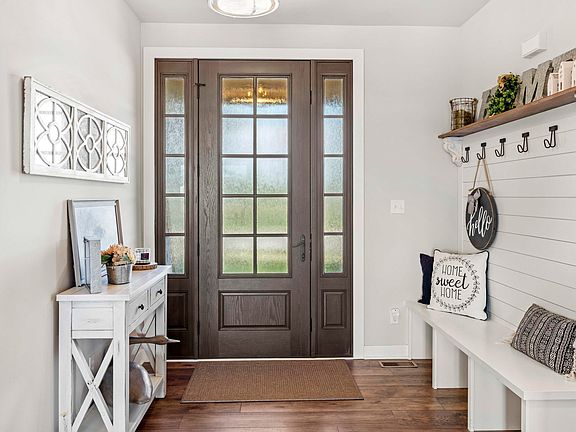 Large custom 5 bed 3 bath ranch with NO HOA and NO BACKYARD NEIGHBORS on full 9' basement!! Gorgeous kitchen with huge island, commercial appliance, soft close cabinets, granite countertops, and farm sink overlooking the farm field. Open concept living and dining with tall ceilings and beautiful fireplace. Big primary bed with full en suite bath and large walk-in closet. Beds 2 and 3 have walk-in closets and bed 4 has a custom closet. Unbelievable custom play house in the basement next to the 5th bedroom. The rest is an Incredible unfinished living space, work out area, and tons of storage space. The 12' slider opens to a fully fenced, fantastic patio with dog turf making clean up as easy as it gets! Strung Edison bulbs completely set the mood in the evenings while watching the sunset. Awesome swing set/play zone on Perfect Turf with 4" padding for zero injuries. There's also a pop up sprinkler in the middle for endless summer fun! Full irrigation, a 50amp RV hookup on the side of the home, and all the additional features makes this your next perfect place! Schedule your showing today!!