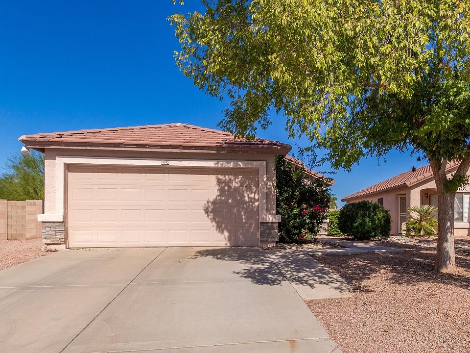 Great location within Ashton Ranch! This 2 bedroom, 2 bathroom home has been well-kept and is move in ready. Den area could easily be converted to a 3rd bedroom, if desired. Open concept with an updated kitchen. Tile and laminate floors, beautiful quartz countertops, and led light fixtures throughout. You will also love the large lot, with RV gate and a backyard waiting to become your oasis. Ashton Ranch is located within 1 mile of the City of Surprise Recreation Campus, tennis and pickle ball courts in close proximity, and 3 community pools within the community. This home is also close to spring training Major League Baseball fields, shopping and restaurants.