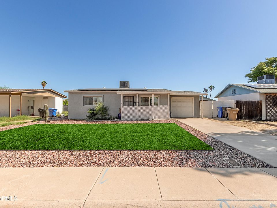 This charming 2-bedroom home is the one! Discover a serene living room with a soothing palette and durable tile flooring for easy maintenance. Culinary adventures await in the eat-in kitchen, equipped with granite counters, ample wood cabinetry with crown moulding, stainless steel appliances, and a peninsula with a breakfast bar. The main bedroom includes a private bathroom for added comfort. Imagine tranquil afternoons in the cozy backyard, which offers a covered patio and plenty of space for crafting your dream outdoor oasis. Conveniently located close to bus stops, schools, parks, restaurants, and shopping. Newer A/C Interior paint Bd floors. Don't miss out on this fantastic opportunity!