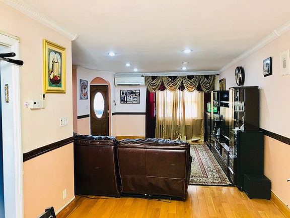 kew garden hills renovated 3 bedrooms 2.5 bath home for sale. home features front porch woods floors, split system a/c , formal living / dining room with doors leading to a 18 x 18 foot balcony extension. street level basement with spacious yard. r4 zoning!!!