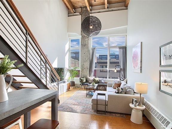 Rare opportunity to own in the MONIQUE LOFTS! NYC style loft once a 1913 industrial warehouse converted in 1999. Located in the heart of vibrant Capitol Hill's Pike-Pine corridor w/bars, theatres, night life+. Soaring dramatic 18.5 ft ceilings, architectural elements of old-growth timber, exposed beams, brick, cork floors, steel & concrete intermixed with modern design. Newly remodeled sleek kitchen w/movable island that stays. Upper-level lrg open bedrm w/expansion space for home office. Lrg main floor bathroom w/double size walk-in shower, marble/tile & W/D. Custom Bookcase/California Closets/Fan/Ceiling light. Gar prkg. Stroll over to Cal Anderson, Chophouse Row or hop on the streetcar or Light Rail to your next adventure! 100 Walk score