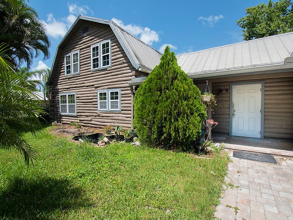 Charming multi-generational log home on a spacious .46-acre lot. The main house features 3 bedrooms, 2 bathrooms, an oversized master bedroom, and impact windows and entry doors. It needs some repairs, offering a great opportunity to add personal touches. The separate in-law suite includes a studio with a kitchenette and 1 bathroom, perfect for extended family or rental income. Additional features include a 2-car garage and a fully fenced backyard. This unique property is ideal for those seeking a blend of rustic charm and modern convenience. **Size sub to err-buyer to confirm