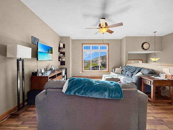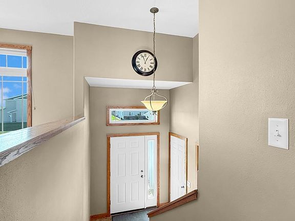 This one-owner split foyer is perfectly situated in SE Minot, just a short walk to John Hoeven Elementary School and the scenic Beowulf Golf Course! From the moment you step inside, you'll appreciate the open layout, highlighted by timeless wood plank flooring and a sun-soaked living room anchored by an oversized picture window. The kitchen blends function and style with custom natural-stained oak cabinetry, a large pantry cabinet, center island, and stone backsplash. Adjacent to the kitchen, the dining room opens to an oversized deck - ideal for summer grilling and enjoying views of your privacy-fenced backyard. Down the hall, you'll find a spacious main bathroom, a comfortable secondary bedroom, and the primary suite. The primary retreat is designed with double windows for extra natural light, a walk-in closet, and an ensuite bath complete with a linen cabinet for added storage. The daylight lower level offers even more living space with a family room featuring double windows, a gas fireplace framed by stone surround, and a convenient beverage station - perfect for entertaining friends or cozy evenings in. You'll also find two additional bedrooms, a laundry/mechanical room, storage space, and the option to finish a third bathroom. The triple garage is a dream - oversized, heated with electric heat, and outfitted with built-in shelving to keep everything organized. With its prime location, thoughtful layout, and abundant storage, this home in one of Minot's most desirable neighborhoods is one you won't want to miss!