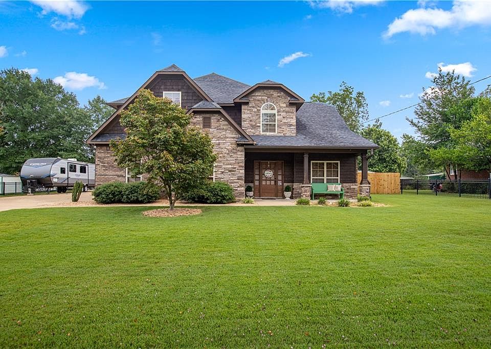 This gorgeous 4-bedroom, 3.5-bath craftsman-style home combines warmth, character, and modern amenities. Built in 2012 and meticulously maintained, it offers 3,270 sq. ft. of thoughtfully designed living space on a beautifully landscaped .41-acre lot. The inviting interior features rich hardwood and tile floors, interior stone accents, and custom hardwood trim and crown molding. It includes a large, spacious bonus room, with a closet, that can be used as an extra bedroom. The kitchen shines with stainless steel appliances, including a brand-new refrigerator and dishwasher, making it perfect for family dinners or entertaining friends. Step outside to your backyard paradise — complete with a sparkling saltwater pool, a covered patio, and a stone fireplace ideal for relaxing evenings. The insulated workshop, RV parking pad with 50-amp hookup, and two-car garage offer plenty of space for hobbies, storage, and travel gear. Tucked behind a secure iron fence with a coded gate, this home is as private as it is welcoming. With two HVAC units with air purification and UV treatment, a sprinkler system, and an alarm system, every detail has been carefully considered for comfort, convenience, and peace of mind.