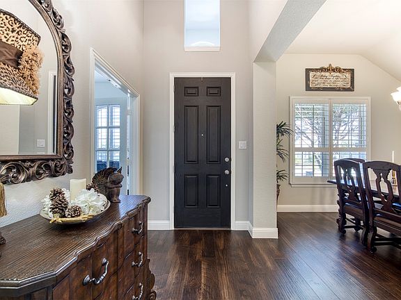 This beautifully maintained Highland Home offers exceptional storage and thoughtful design throughout. The open and inviting layout features generously sized secondary bedrooms and a flexible bonus room—ideal for a den, study, game room, exercise room, or even a guest suite when needed. The heart of the home connects seamlessly to outdoor living, where a beautiful pool, covered patio, and a nicely sized grassy area create the perfect balance for entertaining and relaxation. Inside, plantation shutters add timeless elegance and privacy to every room. A large two-and-a-half car garage includes valuable bonus storage and overhead storage racks. Just off the garage, a convenient mudroom area offers additional cabinetry and space for a second refrigerator—perfect for busy households and entertaining. This home has only had one family live in it...and they thought of everything! So much additional storage in the backyard, attic and garage. Beautiful upgrades in the primary bedroom suite and main living area. And an extremely convenient location in the heart of Harvest. You will be challenged to find a home with all of these features in this price point in Argyle ISD. Don't miss out on this one! Showings start at the Open House on Saturday, Nov. 15th, 1-3pm.