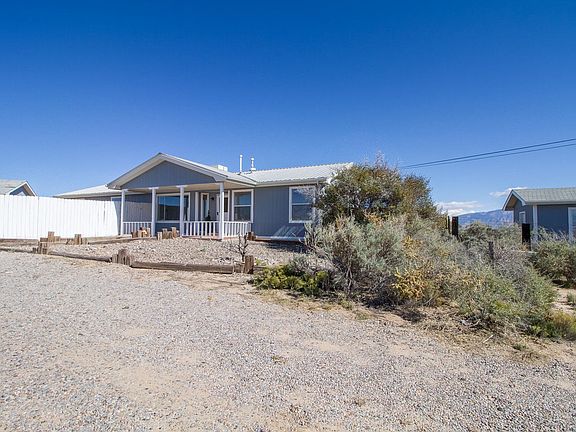 Just remodeled! This beautiful home sits on one acre it has a detached two car garage and additional storage! Brand new metal roof, new interior and exterior paint! Great view of the gorgeous Sandia Mountians! Brand new carpet throughout, country open kitchen with new appliances and counter tops. Beautiful new tile in the bathrooms, new light fixtures, a lot of upgrades were done to the home, a must see!!!
