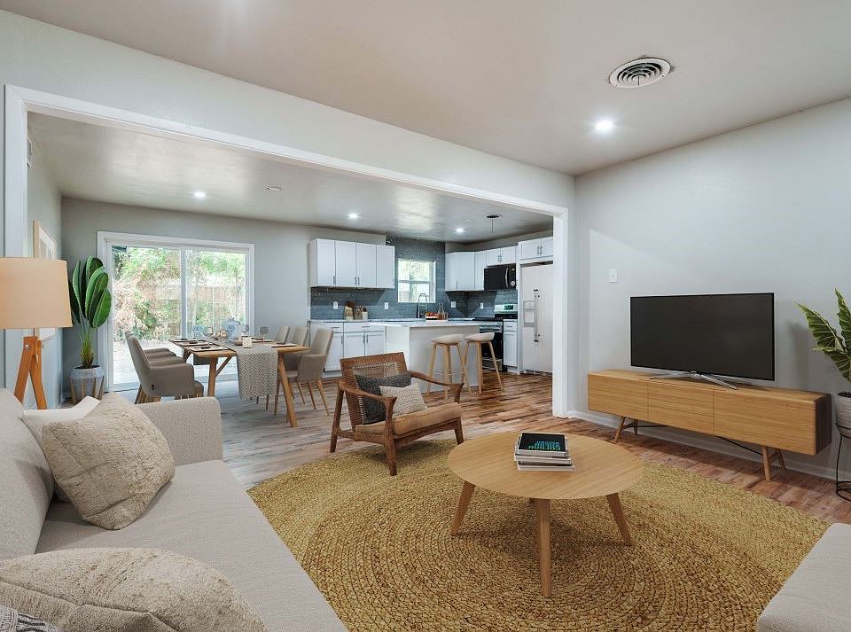 Fully remodeled, move in ready 3 bed, 2 bath home! This home has a great open floor plan that allows you to view the beautifully renovated kitchen featuring stainless appliances, new cabinets and stunning quartz counter-tops! An eat-in kitchen provides space to dine by the sliding glass door leading to the backyard as well as a sizable island for casual meals. Primary bedroom features two closets and a completely remodeled ensuite bathroom with large subway tile shower. Both bathrooms have new vanities, tile flooring and fixtures. Other amenities include a large mudroom with laundry hookups off the garage, double garage doors, brand new windows, recessed lighting in common areas, ceiling fans in every bedroom and gorgeous (original) hardwood floors!