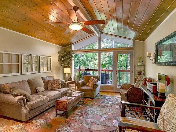 Private retreat - tucked away on quiet street. Main level living with open kitchen/dining. Vaulted Living Room and Master with beamed, wood ceiling. Master w/ new en suite bath and two BR on main. Kitchen has new cabinets, granite, SS appl. Two decks overlook secluded backyard and patio. Lower level features den, 4th BR and study/office. Large (20x16) wired workshop/garden room with loft. New roof 2020/gutters-2019. Most windows replaced. Exterior recently painted.