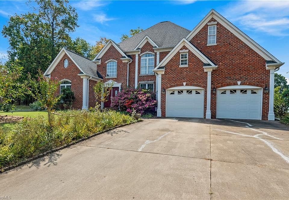 Welcome Home to this all-brick home located in the heart of Kernersville. This property boasts a versatile floor plan, balancing open concepts with traditional spaces. The foyer opens to both a formal living room and a formal dining room. The gourmet kitchen, which is open to a den area with a fireplace, is a true highlight. It features custom cabinetry, granite countertops, a wine fridge, stainless steel appliances, and a large center island, complete with a breakfast area. The entertaining space extends seamlessly to a spacious covered rear porch. The main level includes a primary suite with a custom closet and a fireplace. Its ensuite bath is well-appointed with split vanities, a tub, and a separate tiled shower. The second story offers three additional bedrooms, two full bathrooms, an oversized bonus room, and a dedicated office. Outside, the yard provides ample fruit trees and garden space for those with a green thumb. Close proximity to dining, shopping & highways.