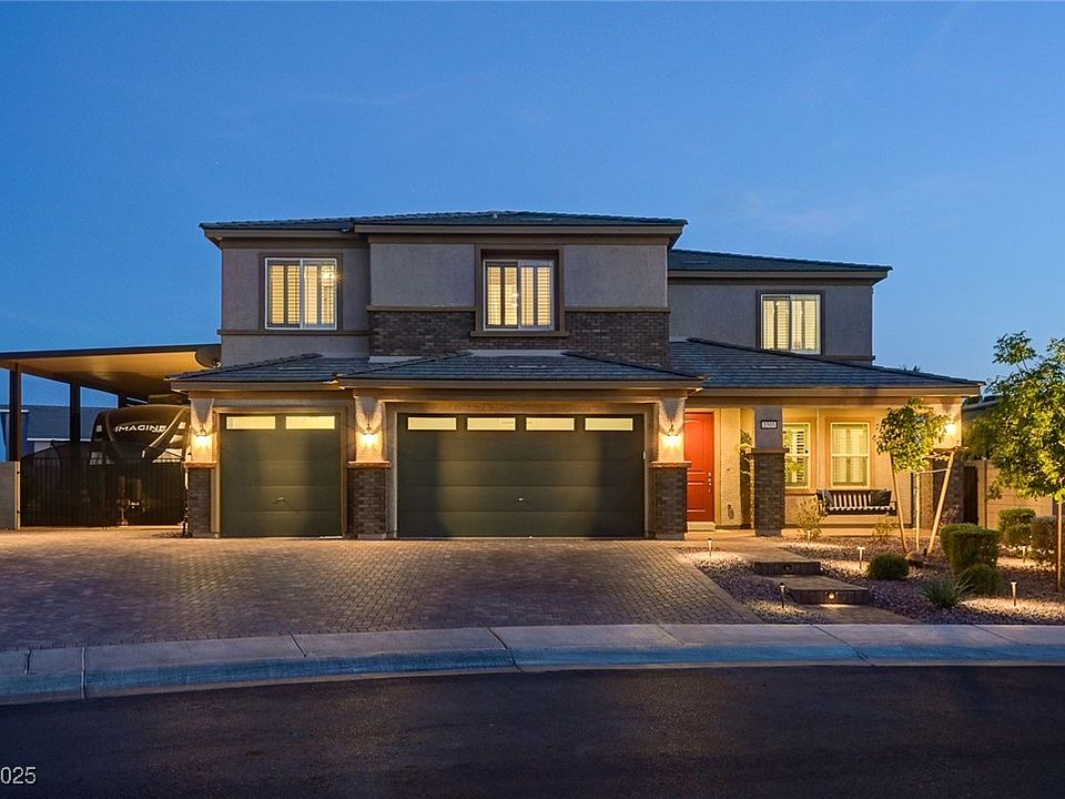 Modern Luxury! This stunning 5-bedroom plus loft home is designed with meticulous attention to detail. Over $300,000 spent on Upgrades! Enjoy expansive mountain and desert views, and close proximity to golf courses. This home features covered RV parking with full hookups, an outdoor kitchen, fire pit, and a spacious full-length covered patio. Inside, the gourmet kitchen dazzles with a super island, quartz countertops, stainless steel appliances, pot filler, and under-cabinet lighting. Experience enhanced living with surround sound in the family room and loft, and the convenience of an upstairs laundry room equipped with a sink and cabinets. Retreat to the primary suite, featuring a private covered balcony with views and dual customized walk-in closets. Newly built in 2022, this home is turnkey and ready for move-in, offering an unparalleled blend of comfort and sophistication. Too Many Upgrades to List! THIS IS A MUST SEE! Take the 3D walkthrough tour on Zillow!